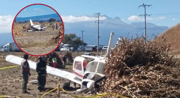 En este aparatoso accidente se vio afectada la aeronave tipo Piper la cual tras una falla mecánica terminó cayendo en una zona de cultivo del Barrio Cuarto del Pueblo Mágico y era tripulada por un profesor y su alumno de clases de vuelo.
