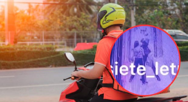 Cuando la joven se acerca al repartidor, este intenta acortar la distancia entre ambos en lo que parece ser un abrazo, a lo que la mujer retrocede y este increpa sosteniéndola por la fuerza.