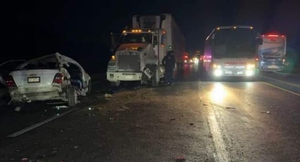 El fatal accidente dejó a cuatro ocupantes del auto Chevrolet Sonic, con placas de circulación FGT 817 A, severamente lesionados, entre ellos dos niños. Teresa Sandoval conducía el coche; salió ilesa.