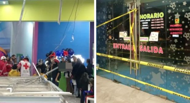 La estructura del techo, que estaba compuesto por un equipo de iluminación, cayó sobre una mesa donde se encontraban menores comiendo.
