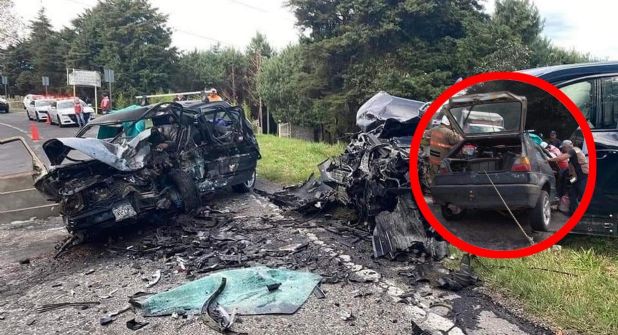Las imágenes de los dos vehículos son impresionantes, pues muestran claramente lo fuerte del impacto al quedar los fierros totalmente retorcidos.