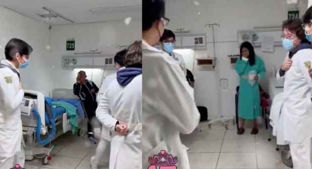 Personal médico de un hospital del Instituto Mexicano Del Seguro Social (IMSS) en Toluca, Estado de México, celebró los XV años de una paciente hospitalizada, a la joven se le ve emocionada por el gesto que tuvo el personal de la institución.