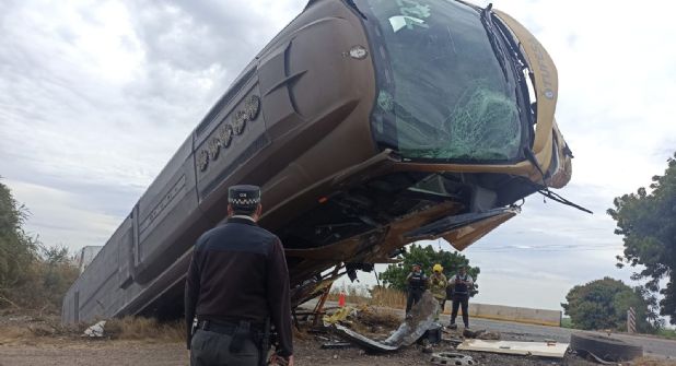 El vehículo de la línea TUFESA sufrió una volcadura; afortunadamente no llevaba pasajeros, por lo que solamente el chofer salió con algunos golpes, pero ileso pese a lo aparatoso del accidente.