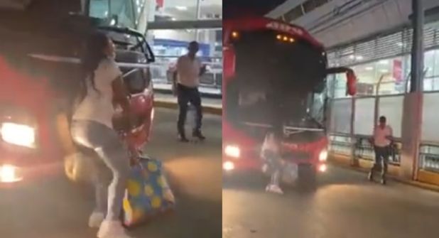 Los hechos fueron registrados en calles de Villahermosa, Tabasco, donde una mujer se paró frente a un autobús de la empresa Autobuses Del Oriente (ADO) e incluso se recargó en la parte frontal para evitar que continuara su camino. La unidad circulaba a baja velocidad sobre la Avenida Francisco Javier Mina cuando fue interceptado por la usuaria impuntual.