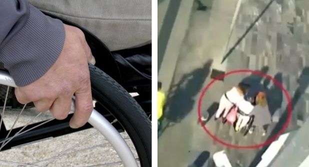 Nada cerca de la realidad, pues están justamente asaltando al hombre, despojándolo de su único medio de transporte. Sin una pizca de vergüenza, las ladronas agarran al hombre de los brazos, y lo bajan al suelo para después llevarse la silla de ruedas, atravesando la avenida.