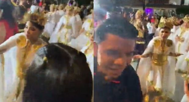 En un video que fue publicado en TikTok, se observa cuando la pareja contempla el espectáculo, cuando de pronto, una de las bailarinas se acerca al joven con la intención de que forme parte del show. Sin pensarlo dos veces, la novia golpea a la bailarina quien retrocede rápidamente.