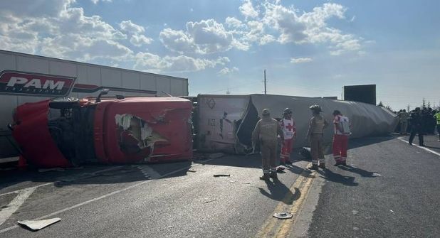 El tráiler volcó y su cargamento era de llantas de vehículos de distintas medidas, un poco más exacto sería decir que el accidente vial quedó registrado muy cerca de la zona conocida como "El trébol" en la zona ya mencionada.