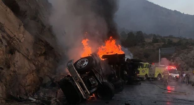 El tráiler volcó hacia su derecha, quedando recargado sobre el carril de acotamiento y el cerro, pero debido al diésel derramado en la carretera, el vehículo comenzó a incendiarse. Para fortuna del conductor, éste logró salir a tiempo de la unidad.