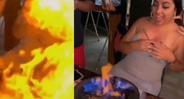 En redes sociales circula un video en el que una festejada pasa de la diversión a momentos de terror, luego de que le ponen un shot con una bebida alcohólica y está sobre una charola. De pronto encienden la bebida y la acomodan hacia la festejada, pero todo se sale de control, cuando le vierten más bebidas y se enciende de manera peligrosa.