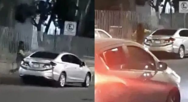 Es tanta la fuerza que incluso logra romper uno de los vidrios del auto, desquitando su frustración por haber recibido un no por respuesta.