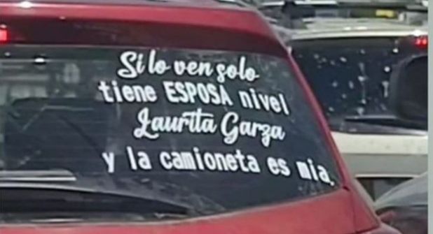 Sobre aviso no hay engaño. Una mujer colocó un mensaje de advertencia en la camioneta que conduce su esposo y desató las redes sociales, al compararse con Laurita Garza