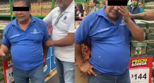 Al principio el patético sujeto trata de cubrirse la cara pero ella le increpa que "no hijo, ya te va a ver todo mundo" y él responde de forma un tanto cínica con un tímido "ni modo".