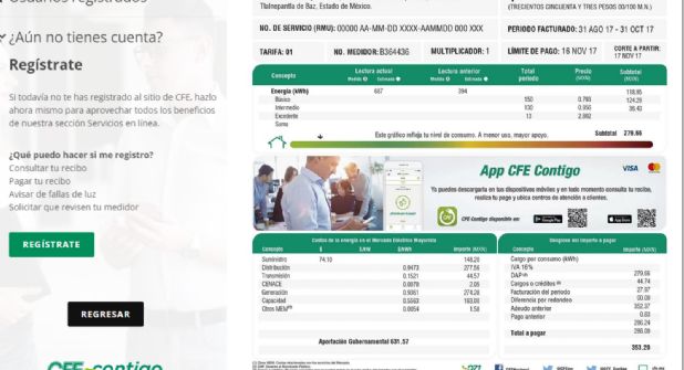 Para poder ver el recibo digitalmente, e incluso imprimirlo si así se desea, hay que entrar al portal de la CFE y registrarse para tener activada una cuenta.