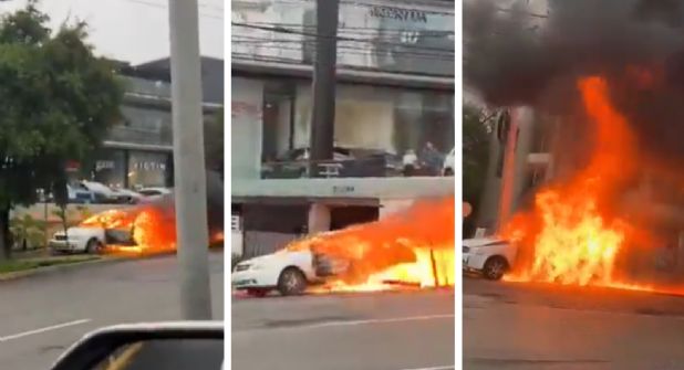 Aunque no presentaba conductor, la escena fue digna de una película de Hollywood, algunos bromearon con la cinta de "Rápido y Furioso", pero no fue más que un accidente que terminó con el auto en llamas.