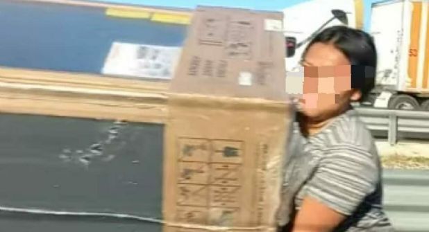 A través de videos que circulan en redes sociales se aprecia el momento en el que pobladores y automovilistas se acercan a la caja del tráiler para llevarse algunos aparatos.