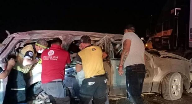 El reporte de Protección Civil señala que el choque fue tan fuerte, que las personas que viajaban en la minivan quedaron prensadas.