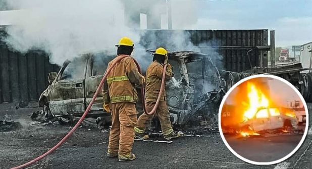 Cerca de las 6:30 a.m. de este sábado, elementos de la Guardia Nacional reportaron el terrible choque y posterior incendio en la Carretera 57 kilómetro 130 a la altura del Puente Vallejos.