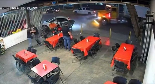 Los hechos ocurrieron en un lugar de comida en la avenida Maquio Clouthier, colonia Buenos Aires en Culiacán, Sinaloa, donde la pesada unidad, de reversa y a gran velocidad estuvo cerca de impactar a unos meseros. Lo importante, y la manera en que salvaron sus vidas, es que estuvieron atentos al tráiler en todo momento.