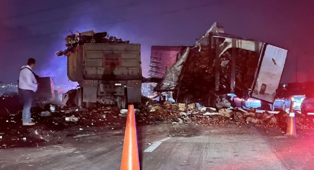 Un hombre identificado como Luis, de 30 años de edad, manejaba un tráiler que estaba cargado de tomates; se dice que iba a exceso de velocidad de Monterrey hacia Saltillo.