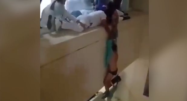 En redes sociales se ha compartido un video, donde un paciente del IMSS se lanzó desde el último piso del hospital, personal médico lo sostenía de los brazos, pero aun así el hombre se lanzó, afortunadamente cayó en unos colchones colocados en la planta baja por empleados del nosocomio público.