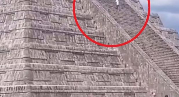 Al ir bajando fue lo mismo se le recriminaba e increpaba por haber escalado la pirámide de Chichén Itzá.