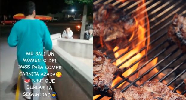 "Me salí un momento del IMSS para comer carnita asada, tuve que burlar la seguridad”, se lee en la descripción del video.