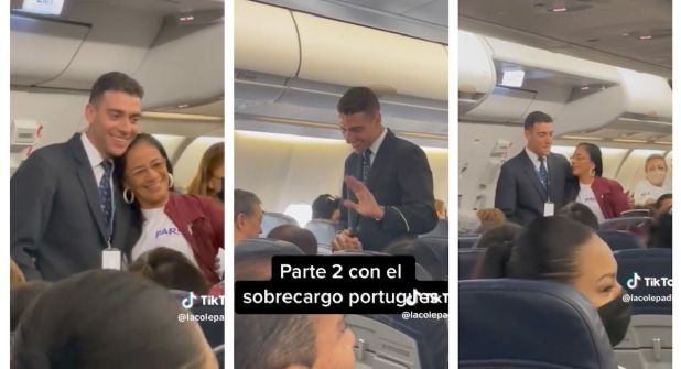 Dos cortos fueron subidos s TikTok y se hicieron virales, esto escribió la usuaria La Colet (@lacolepadilla), quién lo compartió: "Les Platico el contexto: se presento la tripulación y el chico dijo: mi nombre es Diego y soy el más guapo de el avión, y de ahí no se la acabo con las hembras que hasta fila tenia para la foto! arránquense con los piropos muchachas! Avion lleno con 3000 mexicanos, imaginense el desm@dre".