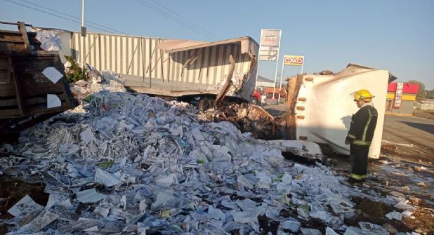 Los hechos se registraron en esta importante vía, a la altura de San Cristobal Zacacalco, Calpulalpan, en Tlaxcala, donde dos unidades se impactaron, pero además provocaron daños en otros vehículos. Uno de los dos tráileres se incendió, pero por fortuna no se reportan muertes.