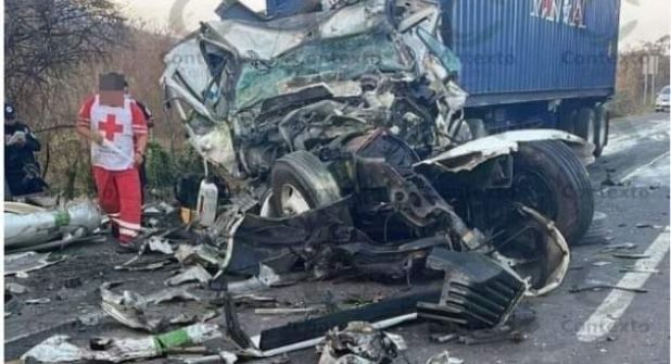 El accidente se registró alrededor de las 6:30 de la mañana, en las inmediaciones de la comunidad de Tecolapa. De acuerdo con los primeros informes, uno de los conductores de las pesadas unidades murió prensado luego de chocar, impactando por la parte trasera del tráiler delante de él.
