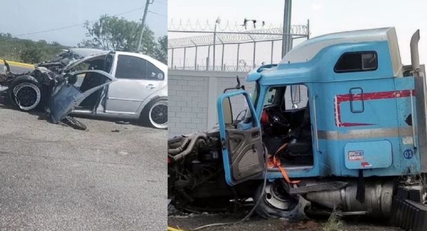 Los hechos se presentaron este jueves en el Kilómetro 7 de la Carretera Salinas Victoria-Ciénega de Flores. Se aprecia en el video que el joven iba en un vehículo Volkswagen Jetta en color gris, pero invadió carril, por lo que se dio el encontronazo contra un tráiler que circulaba por su vía.