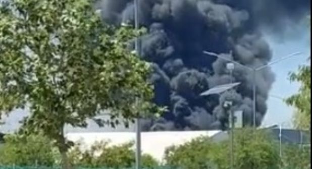 Un incendio de grandes proporciones se registró este medio día en la empresa Recolecciones Ecológicas S.A., de C.V. en el municipio de Apodaca, Nuevo León.