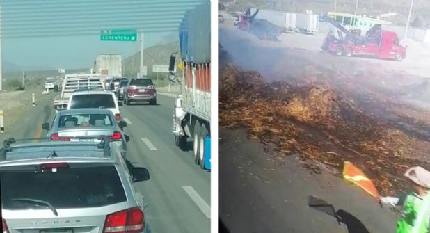 De la nada, el chofer expresó que tuvo que orillarse en la carretera al percatarse de que algunas de las pacas de alfalfa se estaban quemando.