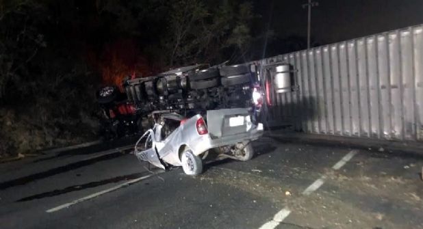Los hechos se registraron en el Kilómetro 242 de la Carretera Nacional, en el municipio de Santiago, Nuevo León. De acuerdo con la información de las autoridades fue cerca de las 3:00 de la mañana. Debido al brutal impacto, el tráiler quedó volcado sobre la vía.