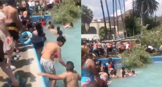 Testigos señalan que en la tarde se empezaron a soltar los fuertes vientos, por lo que uno de los árboles del lugar que estaba algo cercano a una de las albercas se venció, por lo que cayó sobre varias personas que se encontraban en el agua.