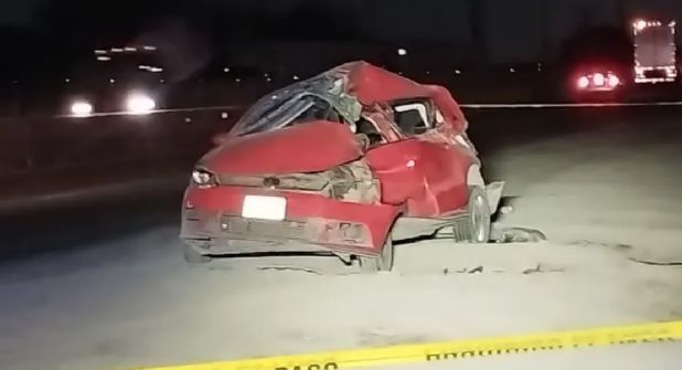 Las víctimas viajaban en un auto Pointer, apenas estaban saliendo de una tienda de auto servicio, al momento de querer incorporarse a los carriles con dirección al oriente, un tráiler los impactó brutalmente.