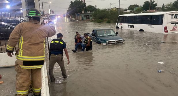En Piedras Negras se reportaron inundaciones y tormentas eléctricas; Protección Civil tuvo que rescatar a varios automovilistas que quedaron varados en sus vehículos.