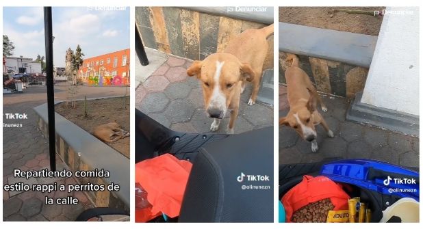 Este video se ha vuelto viral rápidamente, en él se observa a un usuario de la popular red tiktok que lleva comida a perritos en situación de calle al estilo de servicio de entrega de comida rápida; las voces que pone al perro son jocosas.