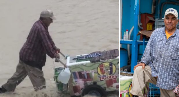 Adrián Guerra es un hombre de 59 años, oriundo de Ciudad Acuña, que se gana la vida vendiendo paletas. Ese día, la tormenta lo tomó desprevenido y, mientras las calles de la ciudad fronteriza se inundaban, él trataba de ponerse a salvo con su carrito de helados.