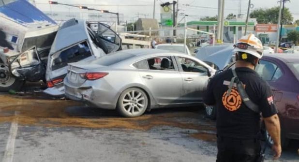La imprudencia de querer cruzar el semáforo momentos antes de que cambie a rojo volvió a provocar un terrible accidente: un tráiler chocó a nueve vehículos, arrastrando a uno de ellos y provocando la muerte de una mujer en la Carretera Apodaca-Juárez, en Apodaca.