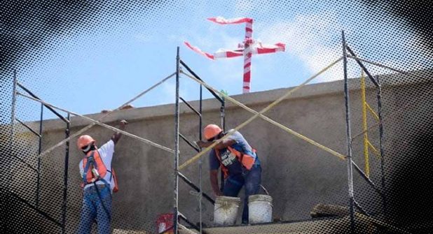 Los trabajadores de la construcción celebran este 3 de mayo en el lugar donde se encuentren trabajando, ahí arman una cruz de madera con los materiales que usarán durante la obra, los alimentos dados durante la celebración regularmente son pagados por el dueño o patrón de la obra.