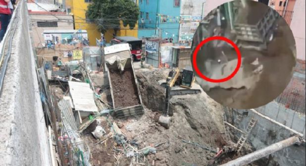 Todo indica que el peso del camión no soportó por lo que se fue para abajo, mientras la tierra colapsa y jala a los trabajadores.