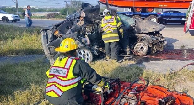 Elementos de Protección Civil de García y rescatistas acudieron al lugar del accidente y confirmaron la muerte de una pareja de aproximadamente 25 años y de una bebé de dos que no fueron identificados.