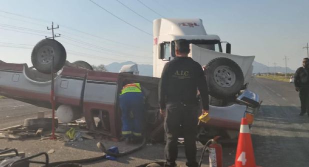 Dos personas perdieron la vida este domingo, luego de un impactante choque entre un tráiler y una camioneta, que acabó volcada en la Carretera Saltillo-Zacatecas.