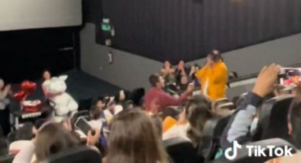 Un hombre realizó una singular propuesta de matrimonio a su novia, en la que usó su creatividad y recursos para sorprenderla en una sala de Cinépolis, ante la presencia de amigos y familiares.