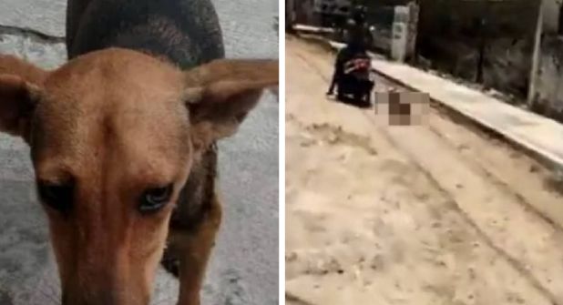 En redes sociales se hizo viral un video en el que un hombre llevaba arrastrando a una perra, amarrada del cuello, mientras ésta lucha por zafarse en un camino de terracería, pero no pudo.