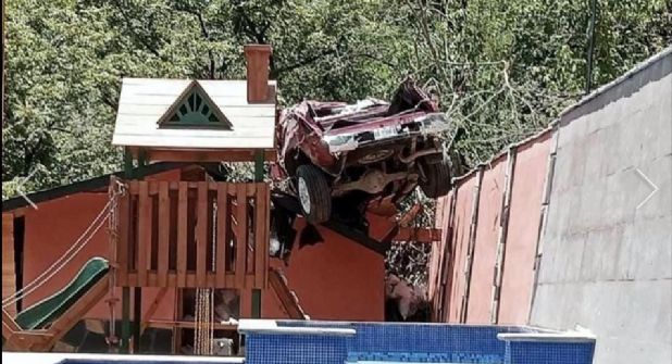 El de hoy fue una camioneta Toyota Hilux, que al caer terminó sobre un baño ubicado a lado de unos juegos infantiles de una finca.