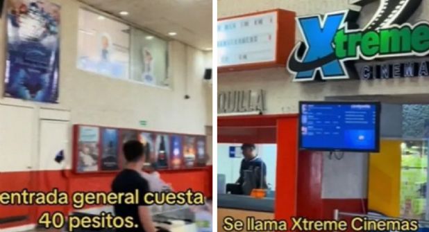 El nombre de negocio es Xtreme Cinemas, cadena adquirida por Cinépolis, cuya entrada general cuesta 40 pesos, con instalaciones básicas y muy limpias.