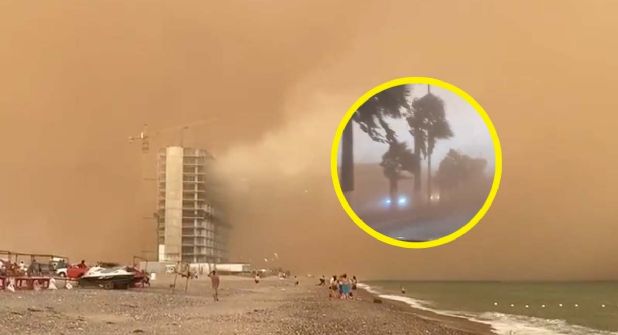 Como si fueran imágenes de una película apocalíptica, se vivió una tormenta de arena en Guaymas y Empalme, Sonora, las localidades afectadas se podían ver desde lejos como ‘desaparecían’ mientras pasaba la inmensa nube de arena, las imágenes dieron la vuelta al mundo.