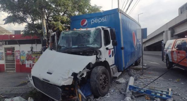 El camión de Pepsi presuntamente se quedó sin frenos por lo que perdió el control y el chofer se estrelló en la esquina en donde se ubica una ferretería, en donde había varias personas en la parada del camión.