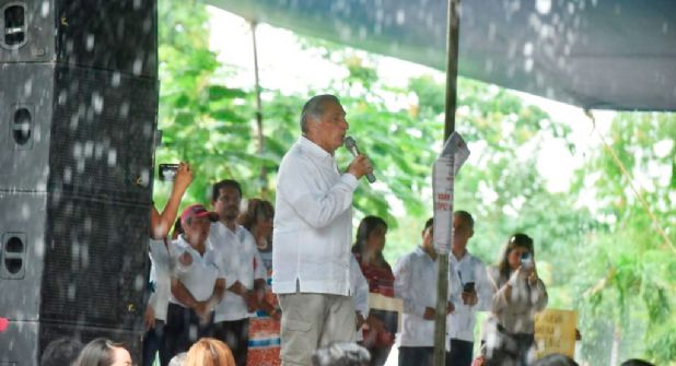 En la plaza de Tuxtepec completamente llena pese a la mañana lluviosa, el aspirante a la Coordinación Nacional para la Defensa de la Cuarta Transformación dijo que “esta región de la cuenca tiene que salir adelante, lo mismo que todas las comunidades del país, especialmente aquellas que históricamente han permanecido en la marginación y el olvido por parte de todos los gobiernos anteriores.”
